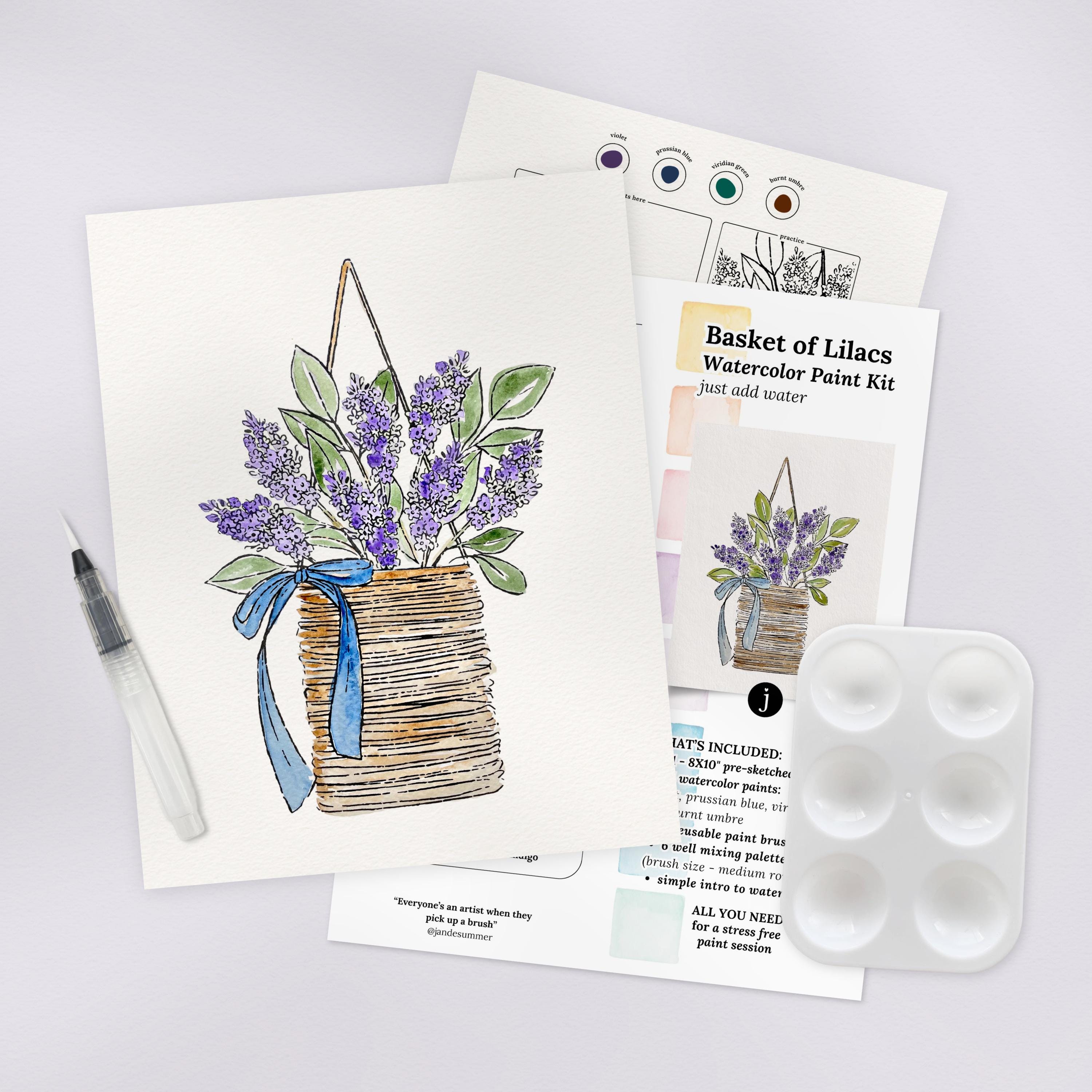 Lilacs in Basket Watercolor Paint Kit | All In One Art Set