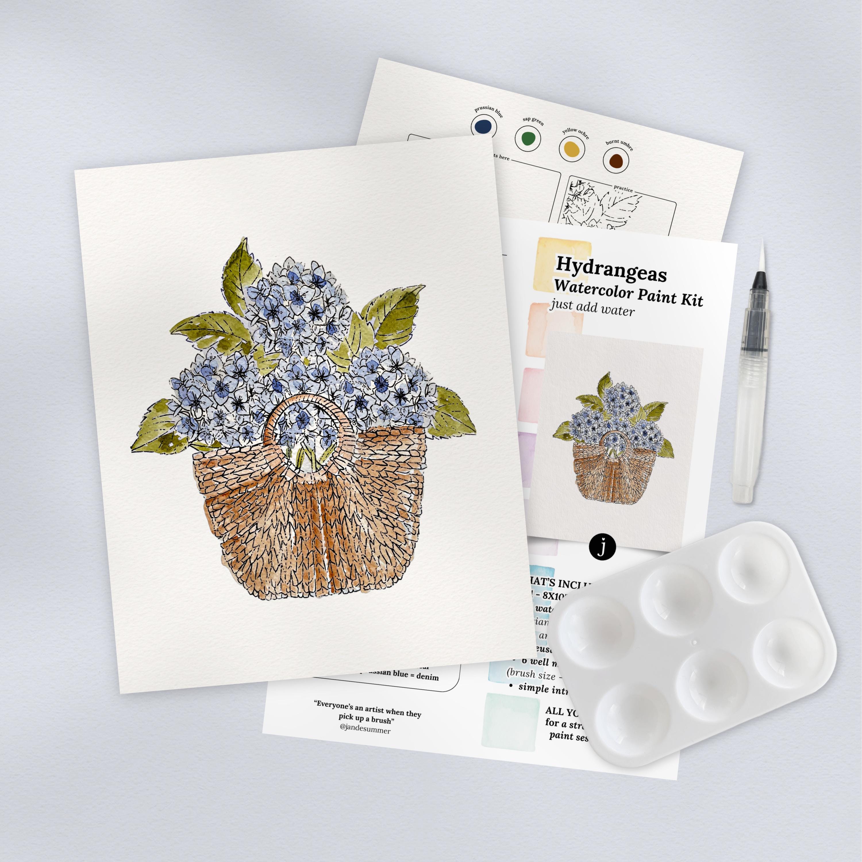 Hydrangea Basket Watercolor Paint Kit | All In One Art Set