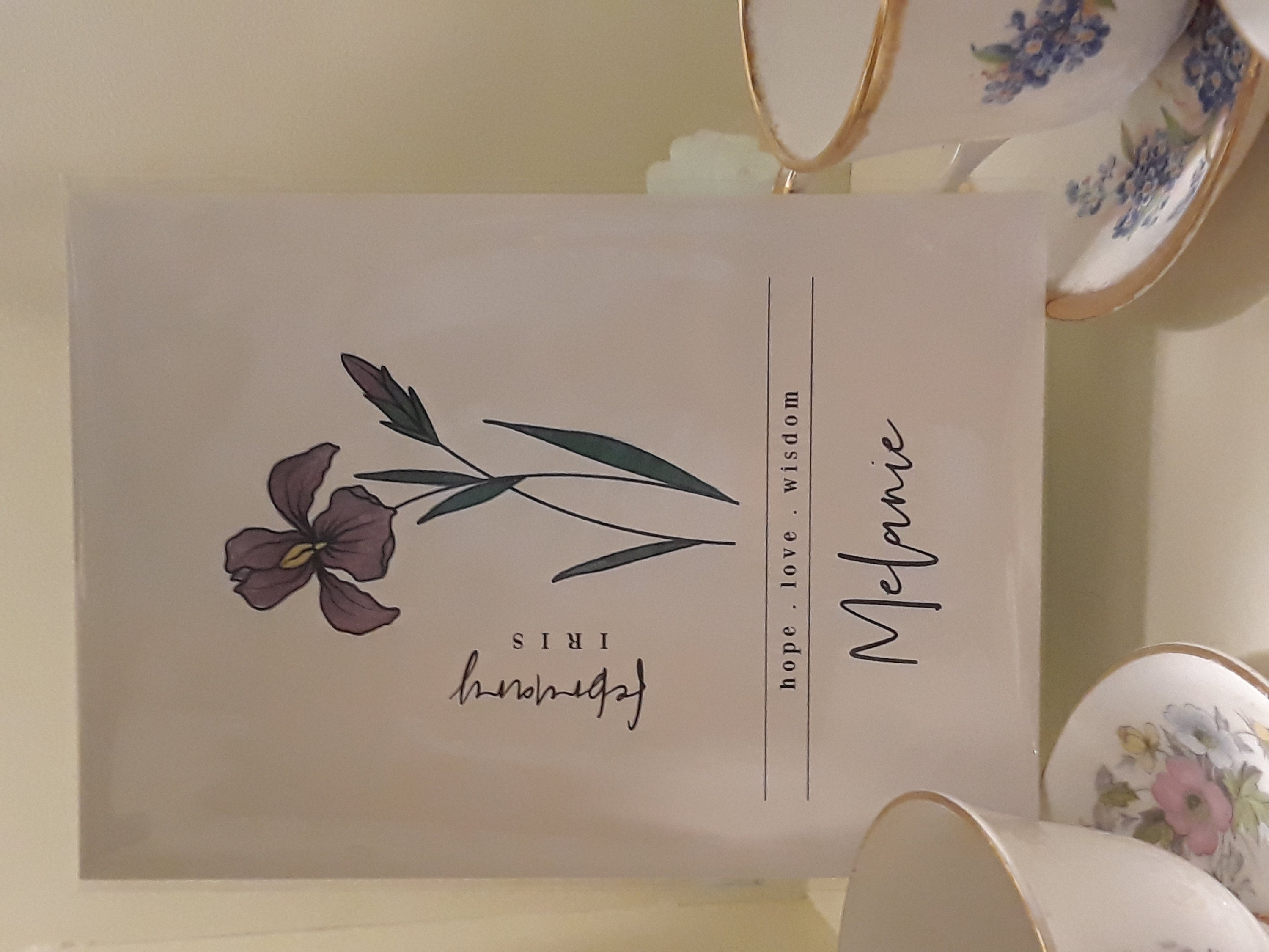 February Iris Birth Month Flower Art Print. Customize with your Name. Perfect keepsake and gift for all ages.