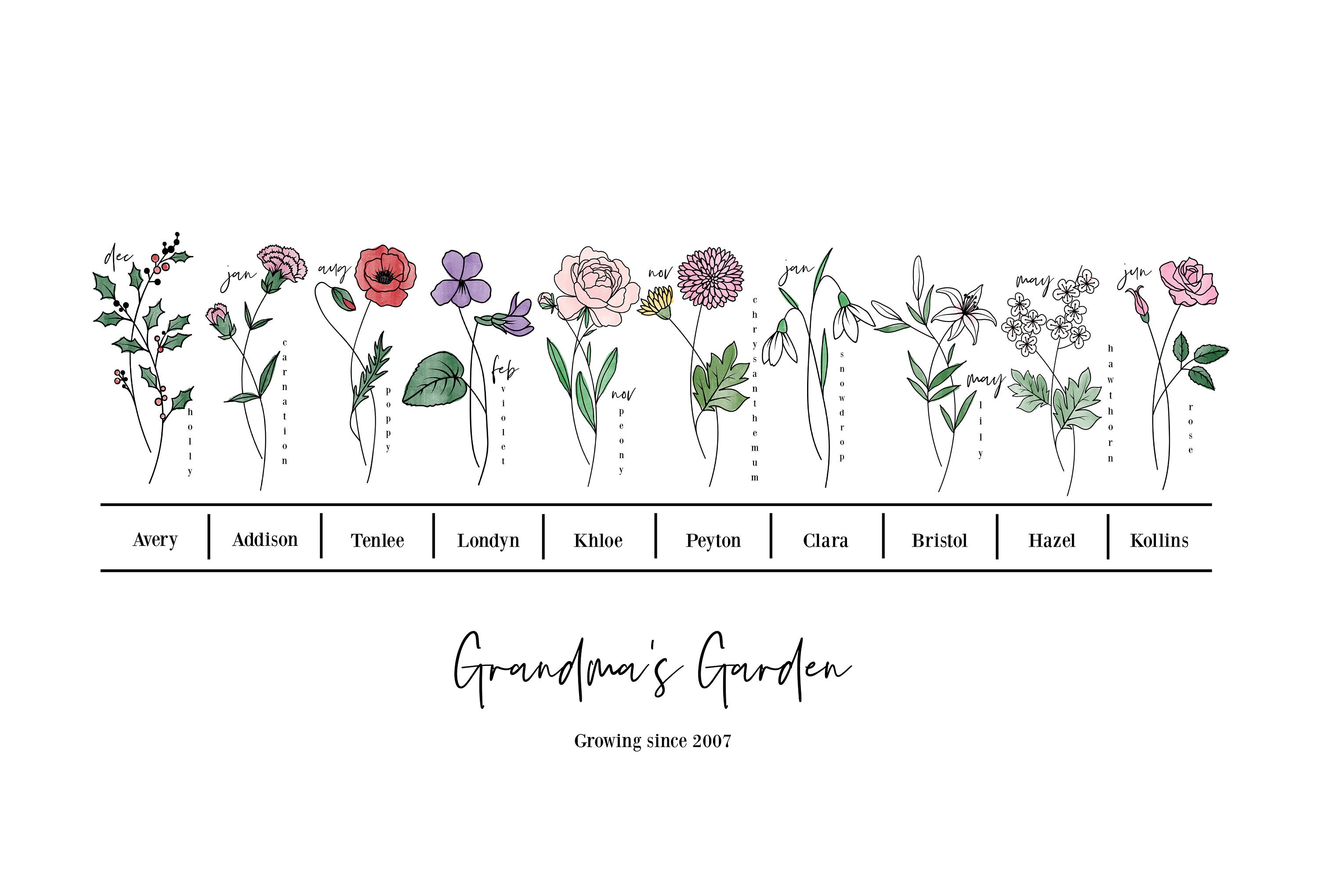 Need a different amount flowers/names? I have 2-12 Name Birth Flower Prints in my shop.