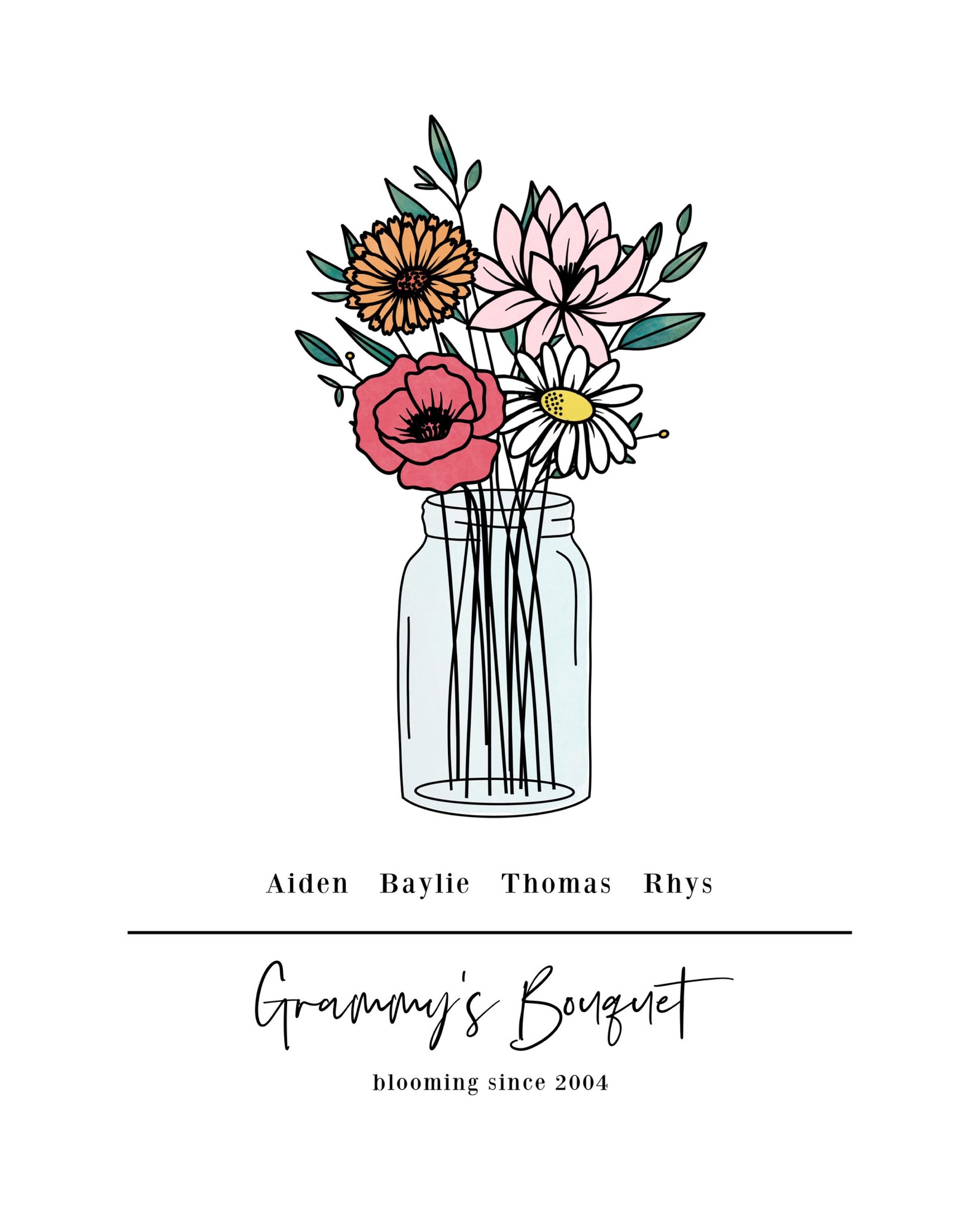 1. Please leave the month flower and Name, Flowers are in Clockwise order. Starting with the left bottom flower as #1. (Numbering the names in order is preferred and very helpful)