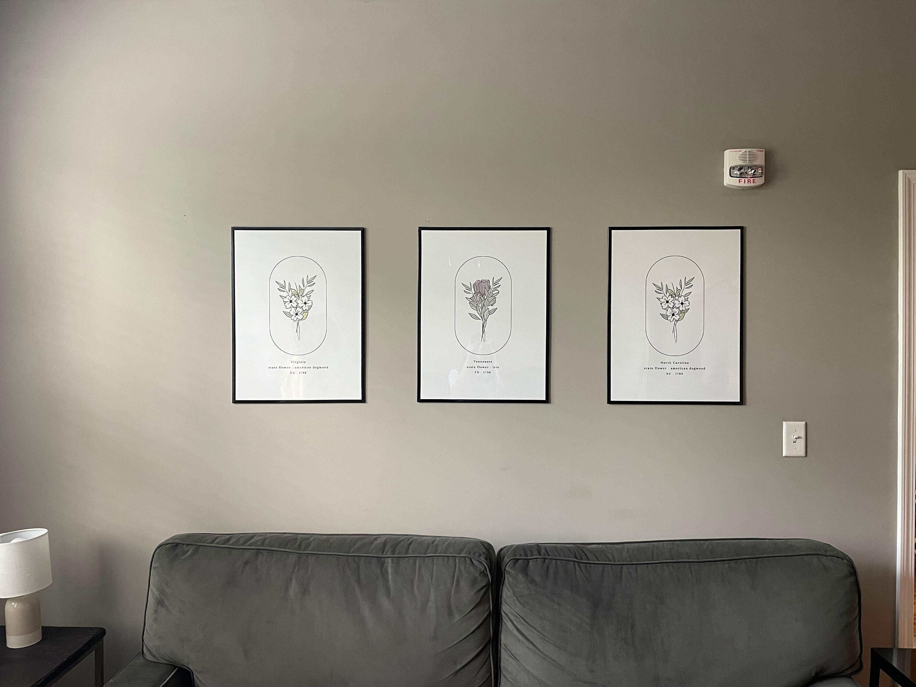 Each Print Includes State Name, Flower, Abbreviation, and Statehood Year.