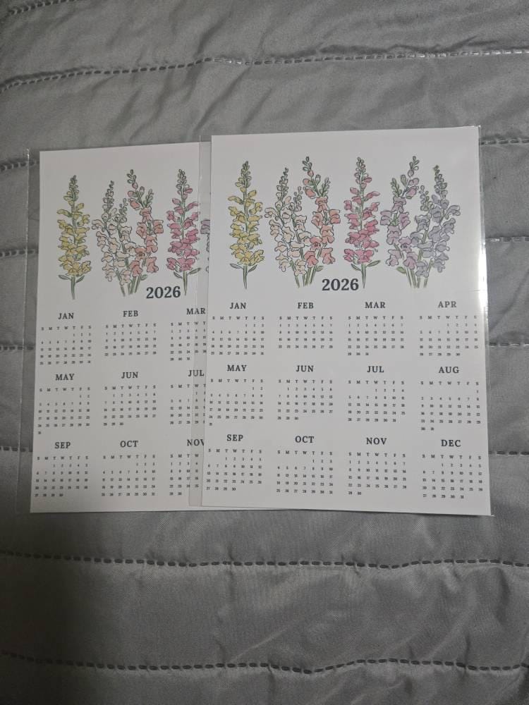 The future is bright with this lovely snapdragon 2026 at-a-glance calendar. Illustrated by Me, Jande Summer. Flowers you can enjoy and you don't have to water.